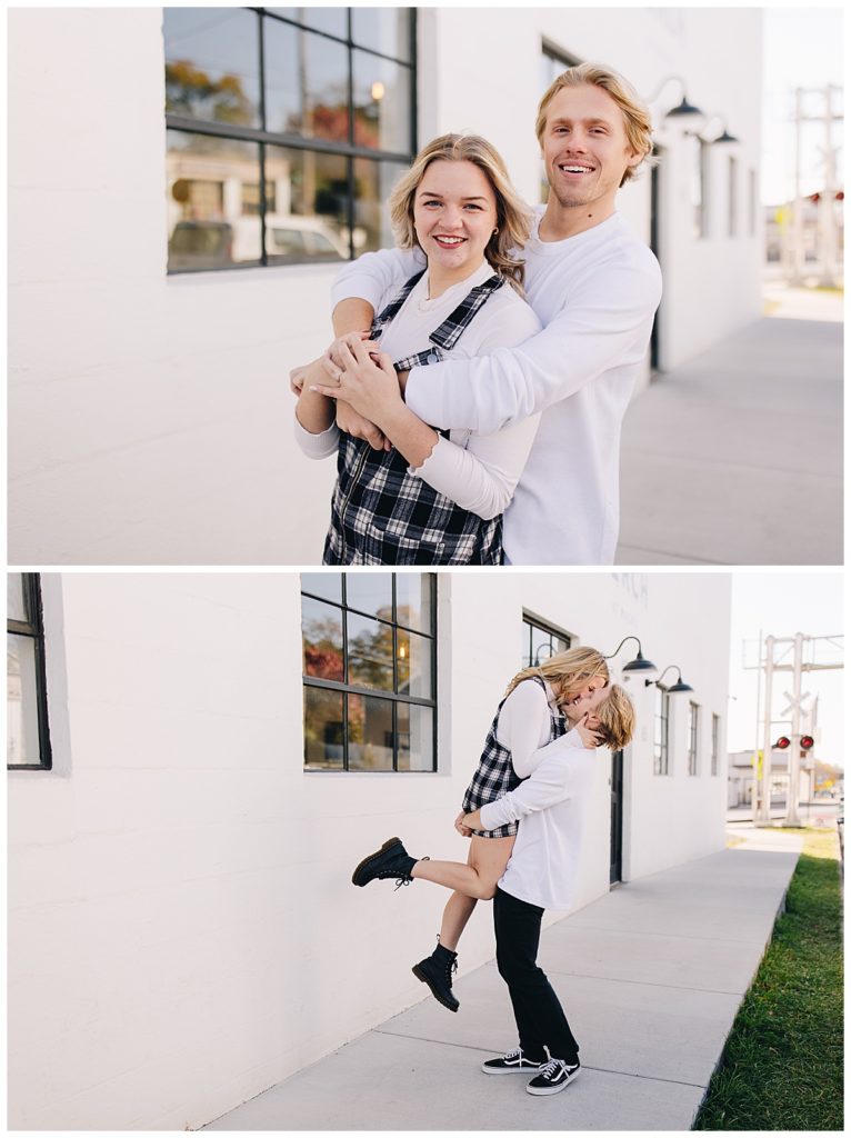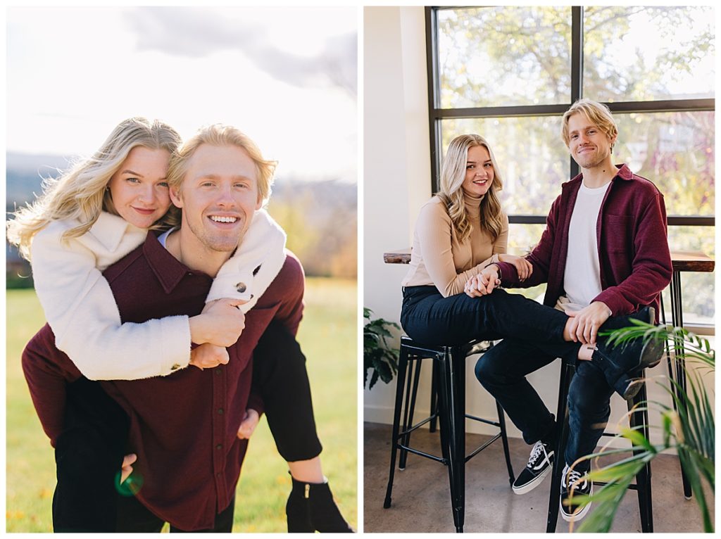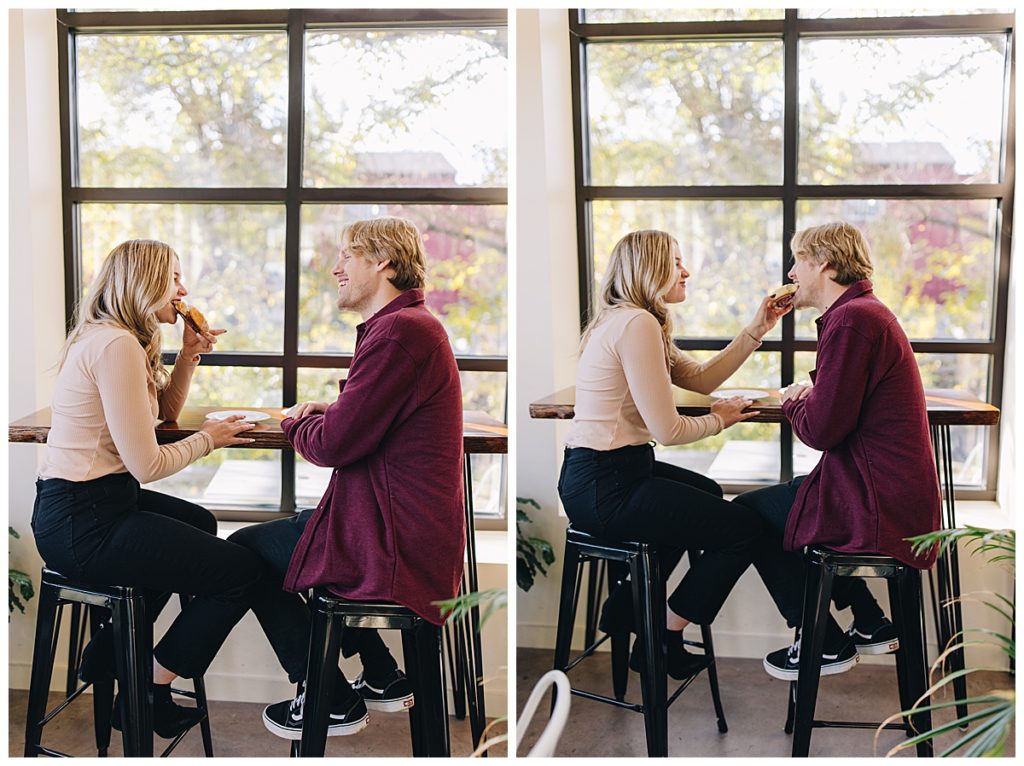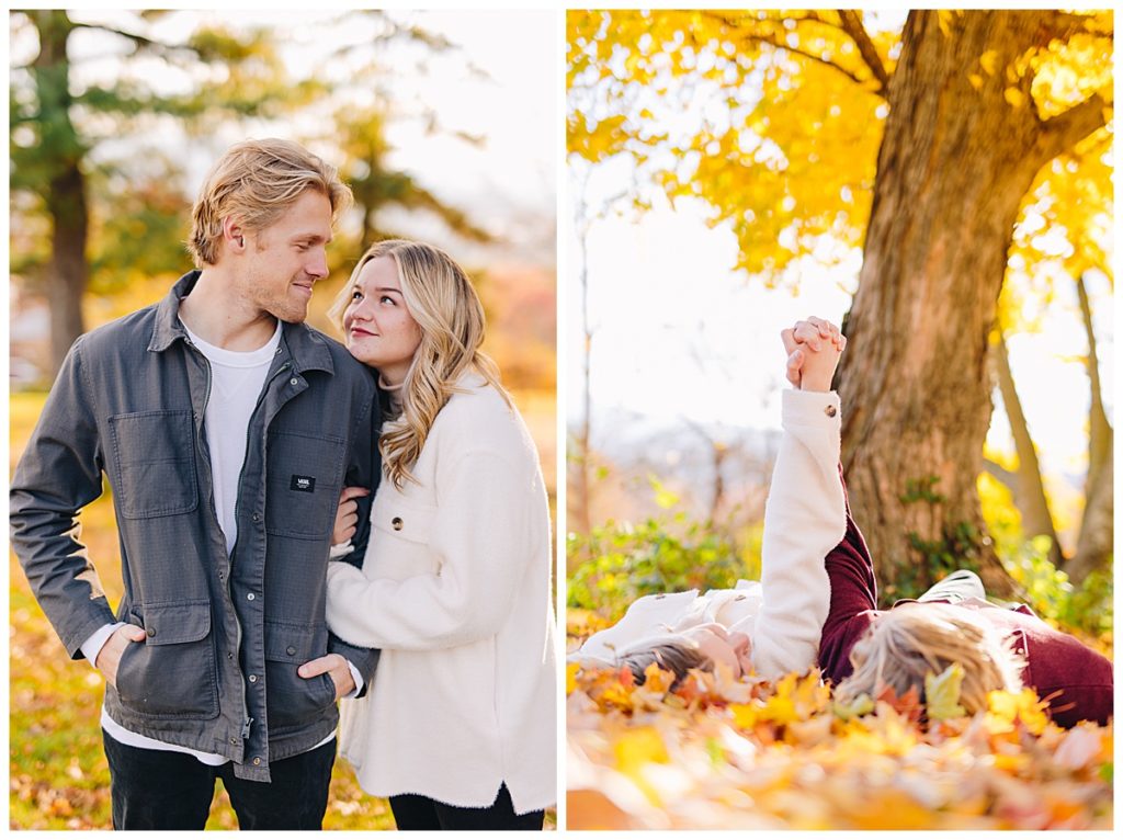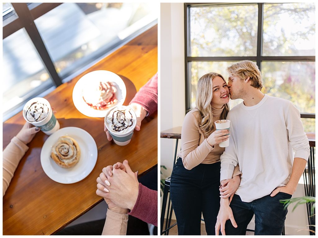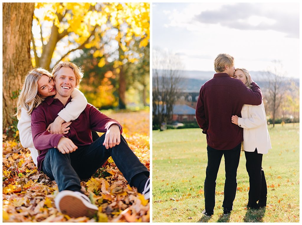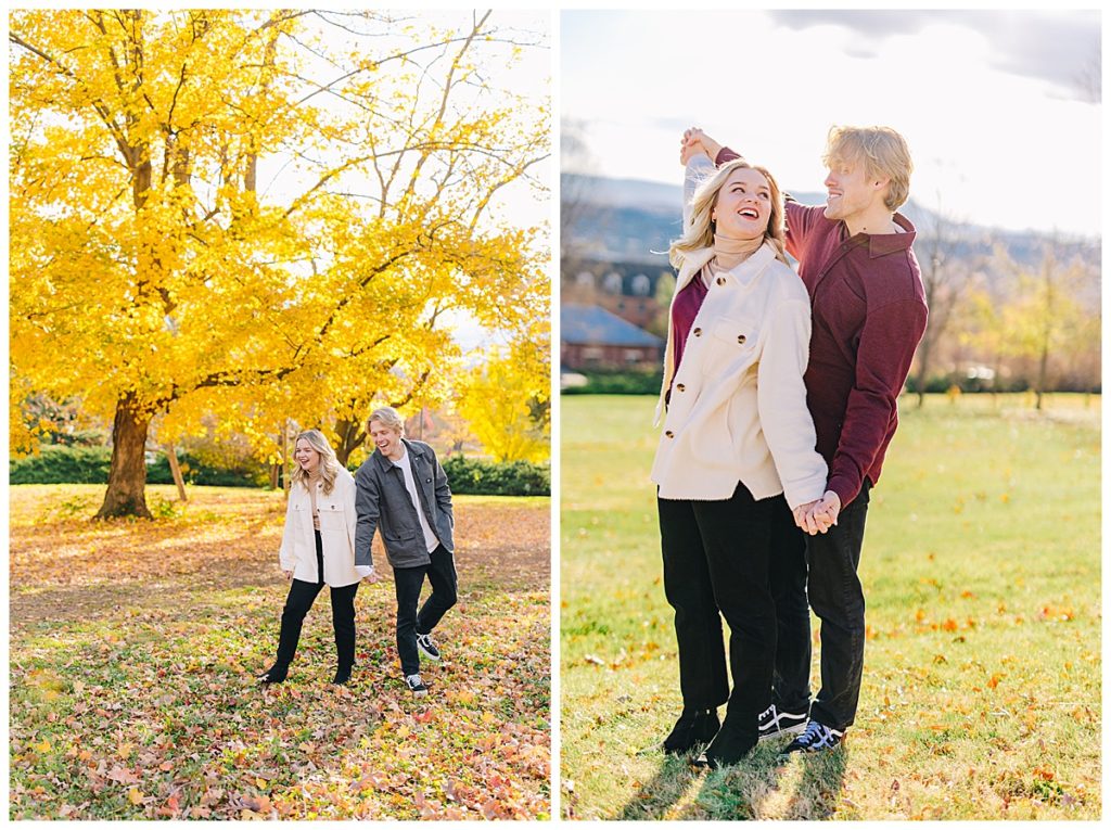 Madison & Cameron have been together since the 7th grade. Growing up in love is something we all dream of, and my goal for this session was to bring their deeply rooted joy to life. Two best friends. We started off that chilly autumn day on the campus of Eastern Mennonite University full of vibrant yellow leaves and one of my favorite mountain views. After a couple outfit changes, we drove over to warm up with a hot chocolate at Merge Coffee Company in Downtown Harrisonburg (one of my favorite places).